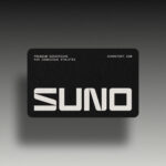 L’identità visiva di Suno si fonda su un logotipo costruito su griglie geometriche, che garantiscono leggibilità e rigore. La palette cromatica combina neutri chiaro/scuro e un metallo satinato, su cui si innestano cromie pastello, creando un’immagine che evoca stratificazioni materiche e tecnologia in continua evoluzione.